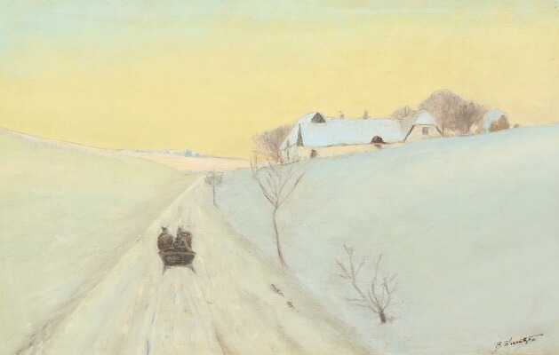 A winter landscape with a horse drawn sleigh