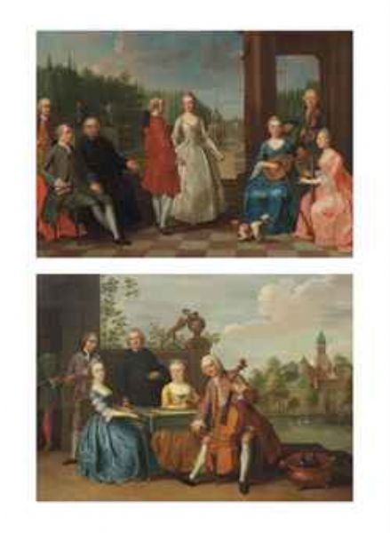 | A portrait of Jacques-Jean Cremers (1736-after 1803) and his wife, dancing, on a garden terrace surrounded by other members of t | |