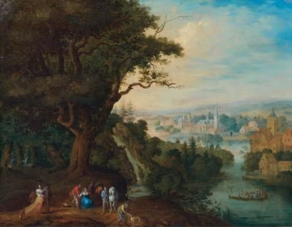 Paysage fluvial animé de personnages