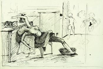 Pen ink over pencil on paper