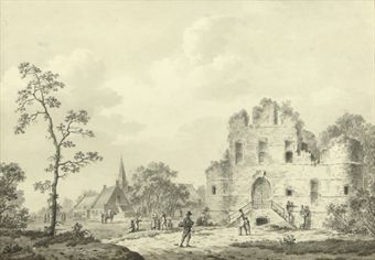 A ruin near a village