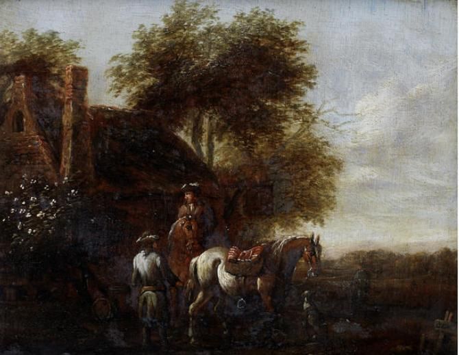 Figures on horseback before a country inn