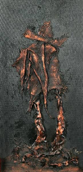 Mixed Media coloured fibre glass, resin and hessian on board