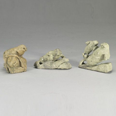 THREE SCULPTURES OF SEALS ON ICE FLOES