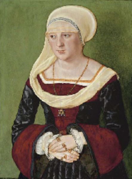 | Portrait of Anna Scheit (1504-1544), née Mem[m]inger, half-length, in red and black costume | |
