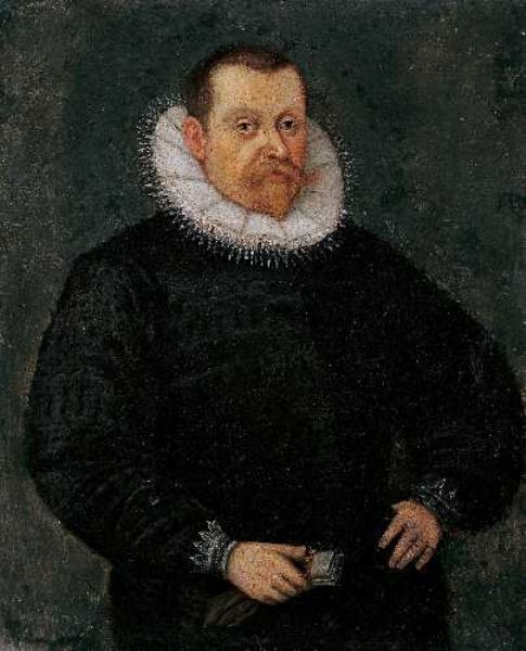 | HÜFTBILDNIS EINES BÄRTIGEN PATRIZIERS IN SCHWARZEM WAMS UND WEISSEM SPITZENKRAGEN. | |