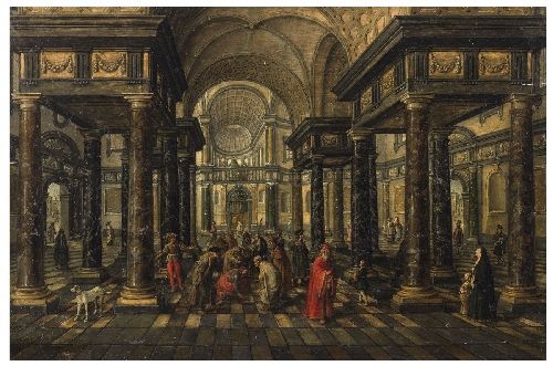 CHURCH INTERIOR WITH FIGURES