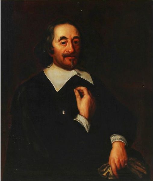 | Portrait of a gentleman dressed in black clothes and white collar. | |