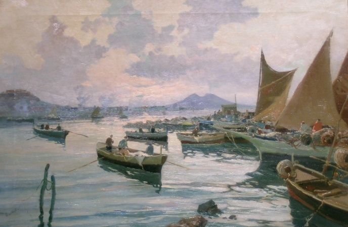 THE BAY OF NAPLES WITH SHIPPING BOATS