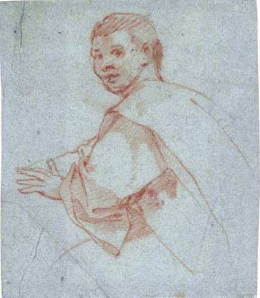 | Chalk red chalk on blue paper, the lower lefthand corner made up | |