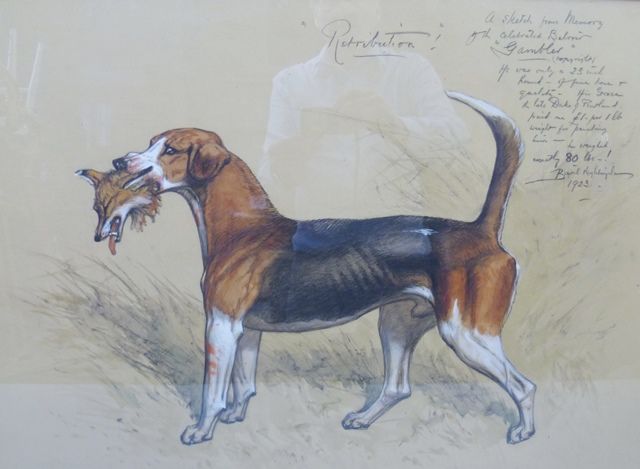 Retribution A Sketch for the celebrated Belvoir Gambler a hound with fox mask in its jaws