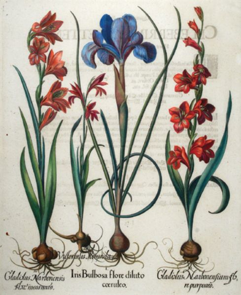 | Iris Bulbosa flore dilato, with three other plants, on one plate, from Hortus Eystettensis | |