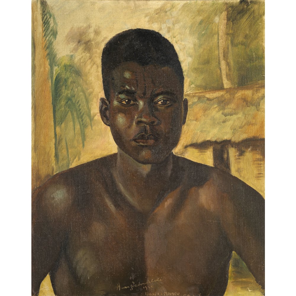 61 by 50 by 4cm including frame and inscribed 'EBODI-MANUU pie.S.T.' | |