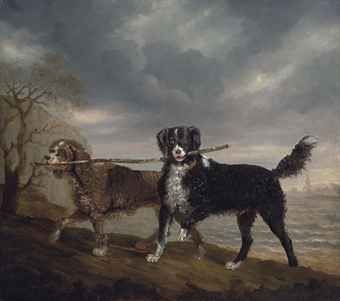 Mrs. Orby Hunter's spaniels, Diver and Shuckleback, by the sea