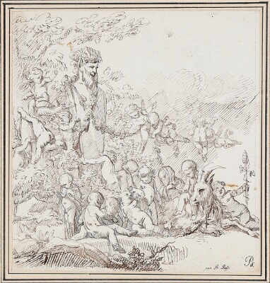 Bacchanal. Unsigned. Inscribed par B. Bossi. Drawing ink on paper. Sheet size 263×254 mm. | |
