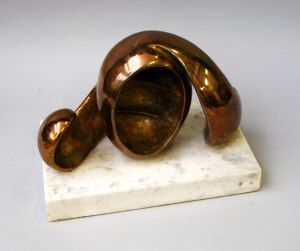 Sculpture polished bronze sculpture on a rectangular marble base