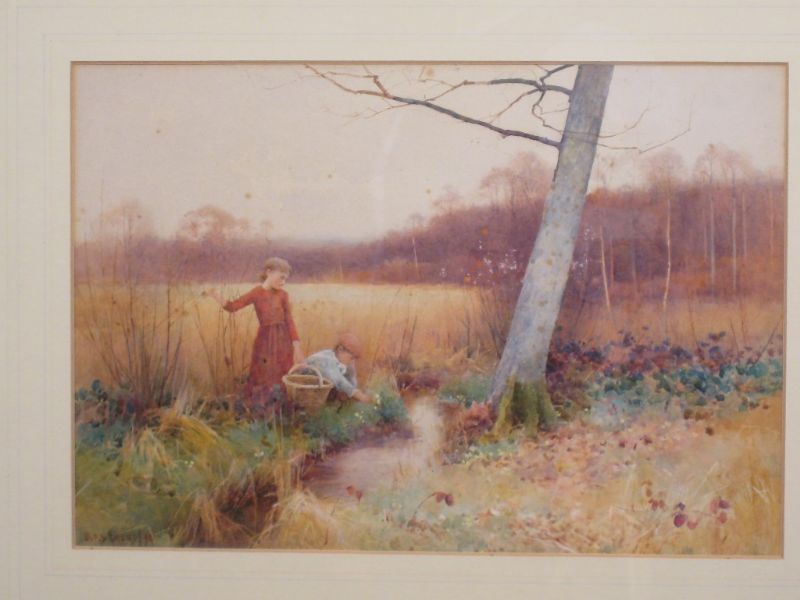 Children picking wild Flowers by a Brook