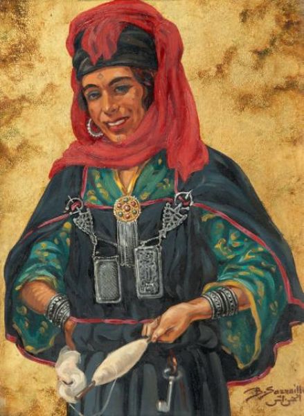 FEMME KABYLE AU VOILE ROUGE A KABYLE WOMAN WITH A RED VEIL