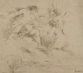 | A kneeling woman supported by an angel with the Risen Christ, after Guercino | |