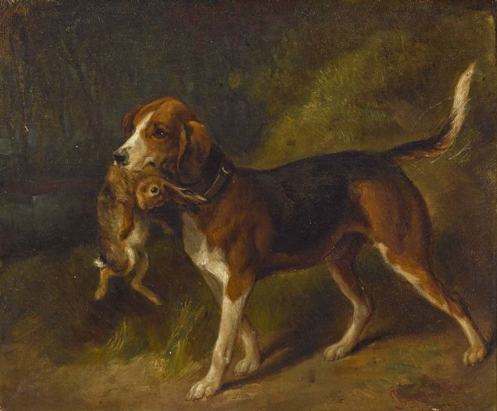 Jagdhund mit seinem Kaninchenfang