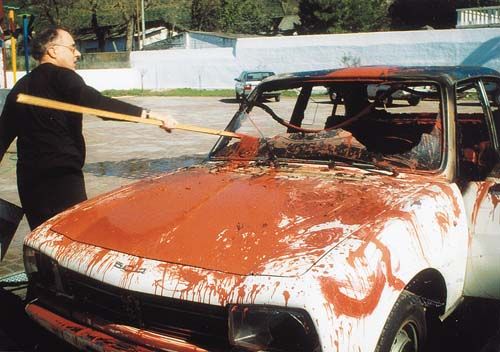 Auto dipinta e bruciata - performance, 1990