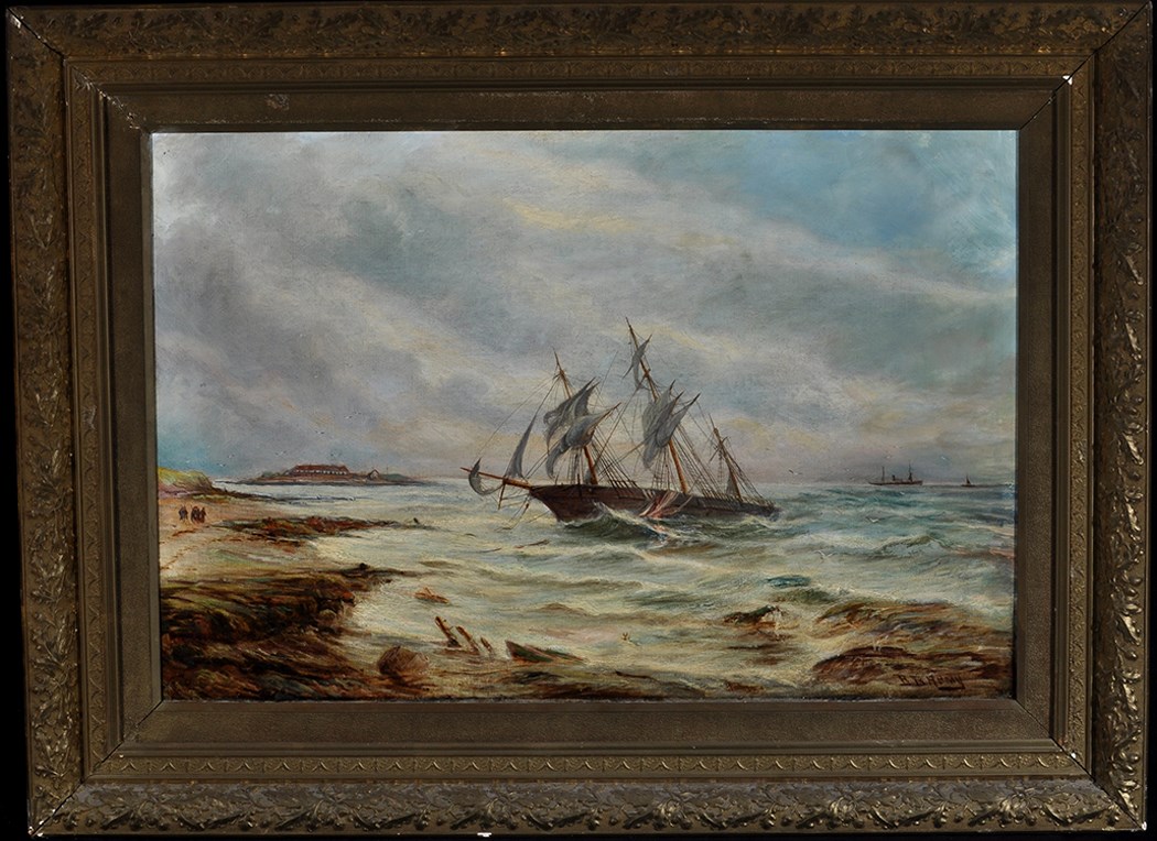 A ship aground on the beach near Bait Island, Monkseaton