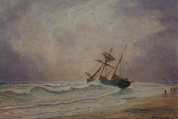 The Schooner 'Luna' aground on Whitley Bay Beach