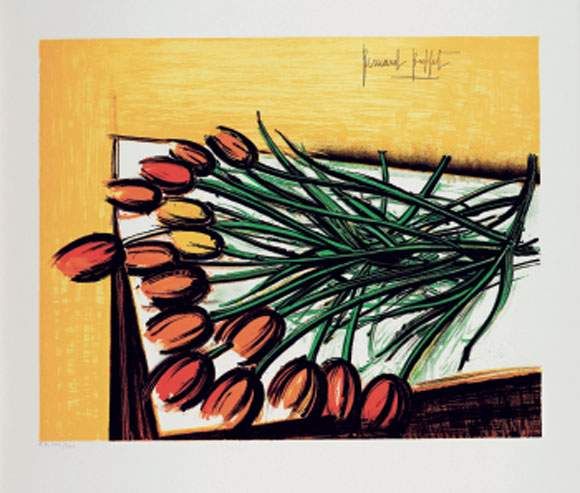 | TULIPES ORANGES ET JAUNES POSÉES SUR UNE TABLE | |