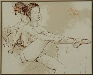 Ballerina tying her shoe