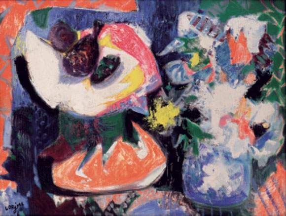 NATURE MORTE AU BOUQUET DE FLEURS ET A LA COUPE DE FRUITS