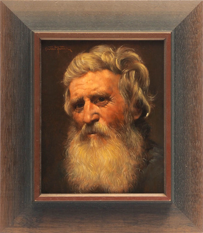 Portrait eines weißhaarigen, alten Mannes mit langem Bart