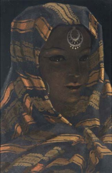 Porträt einer jungen Orientalin mit Kopftuch und Stirnschmuck