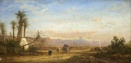 NORDAFRIKANISCHE LANDSCHAFT MIT KARAWANE