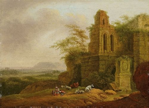 A PAIR OF SOUTHERN LANDSCAPES WITH RUINS AND HERDSMEN
