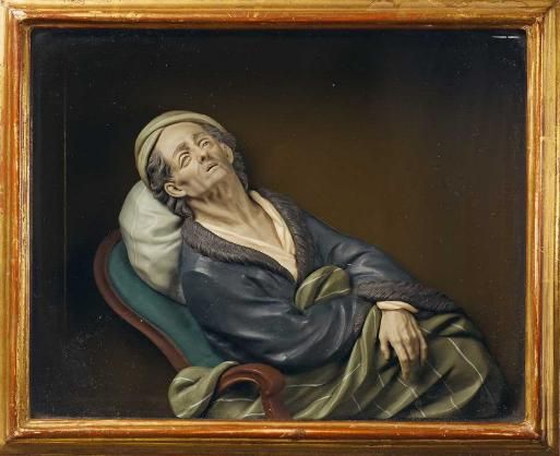 A POLYCHROME WAX PORTRAIT RELIEF "THE DYING VOLTAIRE"