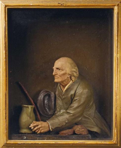 A POLYCHROME WAX RELIEF "THE MODEST PEASANT"