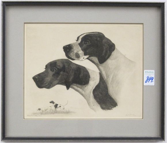 | Study of two English Pointers with remarque depicting the two working dogs in the field | |