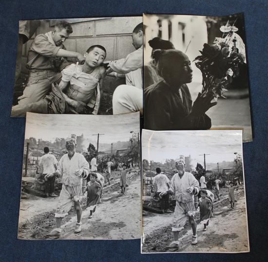 | Korean War - Inchon refugees, boy with medics and old lady holding flowers | |
