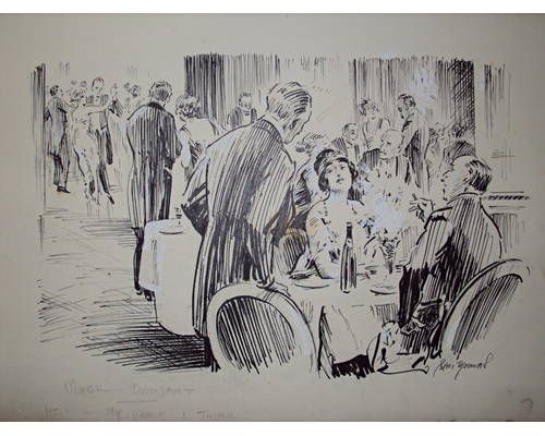 | A selection of cartoons to include a lady and gentleman at a dinner dance, mother and child watching an orchestra and | |