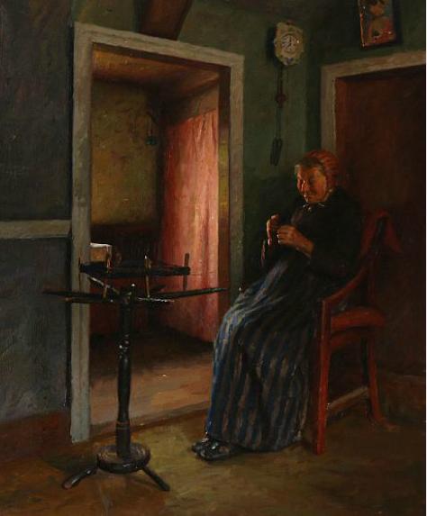 | Interior with an old woman sewing | |