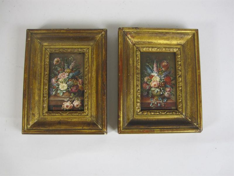 Still Lifes of Mixed Flowers in a basket and a bowl