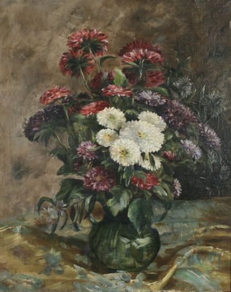 Still Life with Chrysanthemums in a Green Vase