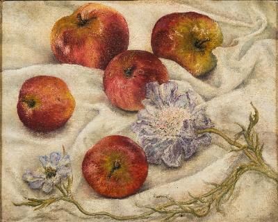 Still life with apples and flowers