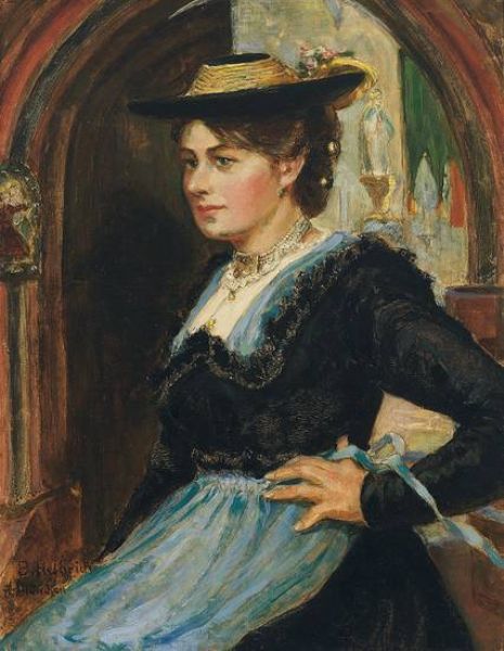 Ortsbez. München. Junge Frau in Tracht vor Kircheninterieu