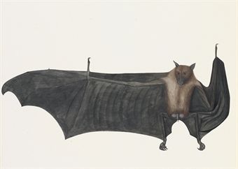 | Giant Indian Fruit Bat (Flying Fox), Pteropus giganteus, one wing outstretched, one folded | |