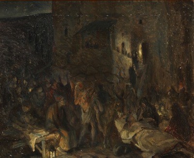 Biblical scene with Christ healing the sick and demon-possessed.
