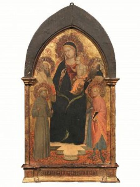 | MADONNA CON BAMBINO, SAN FRANCESCO D’ASSISI, SAN BENEDETTO DA NORCIA, SANT’ANTONIO ABATE E SAN MINIATO | |