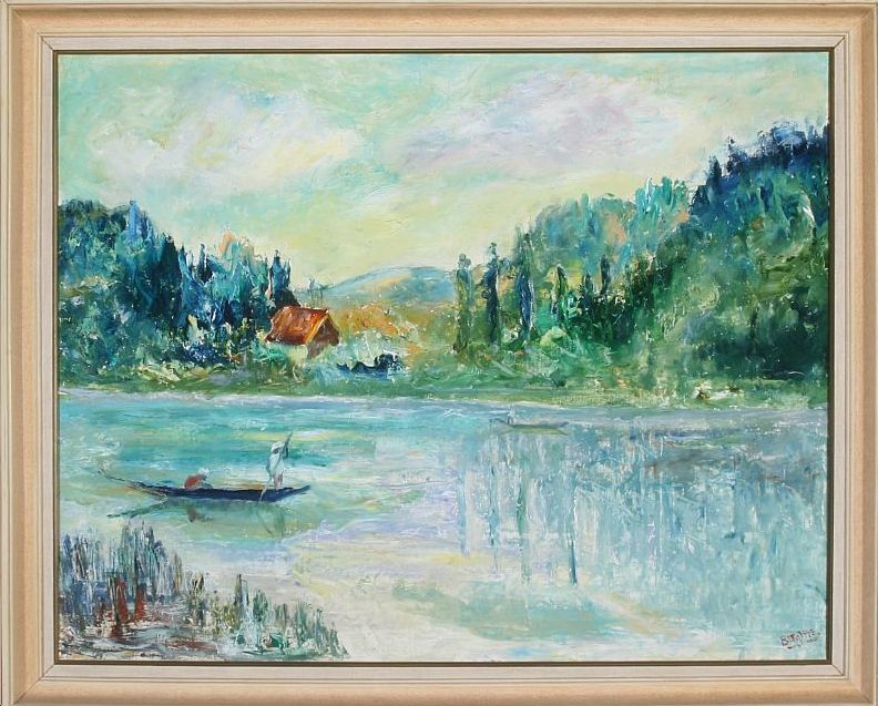 Southern landscape with men in a boat.