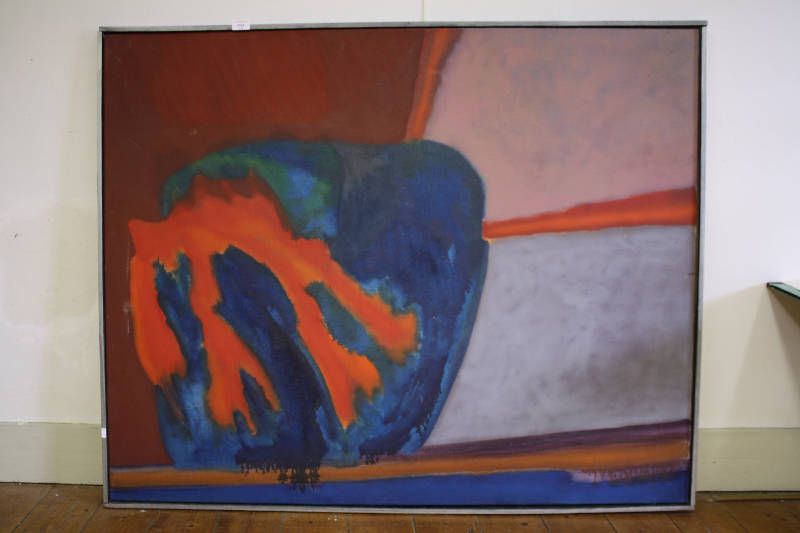 Abstract in blauw en oranje