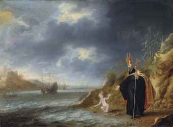 | Saint Augustine's vision of the Christ Child, Dutch men-o'-war and other vessels in a choppy sea and a fortress beyond | |